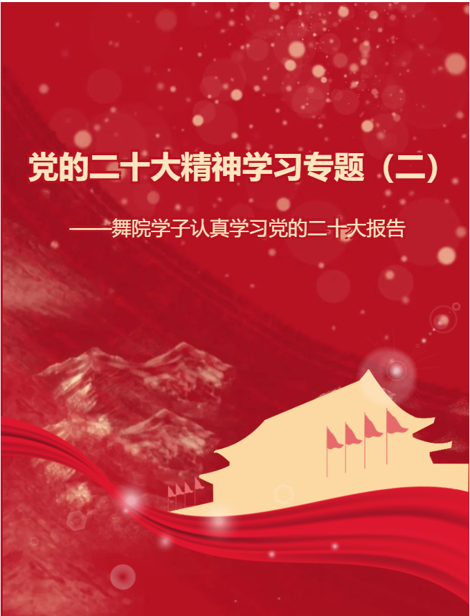 2022年10月16日,我们收看了中国共产党第二十次全国代表大会开幕会盛况,党的二十大为我们擘画了未来五年发展的宏伟蓝图,提出了中国式现代化的发展目标。在未来的学习生活中,我将从自身专业出发,锤炼过硬本领、勇于担当作为、强化党性修养,在舞蹈研究、教育、创作等领域积极践行党的二十大精神。