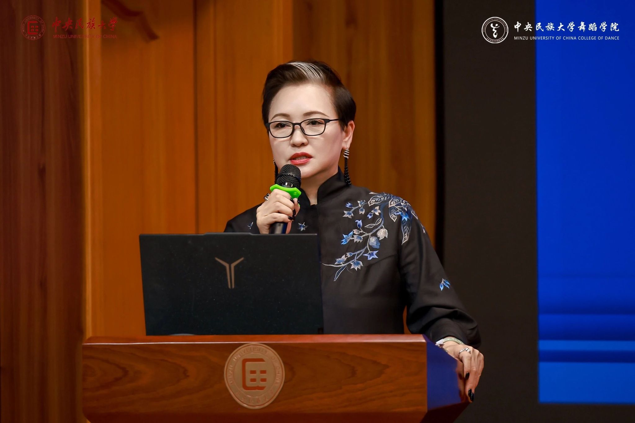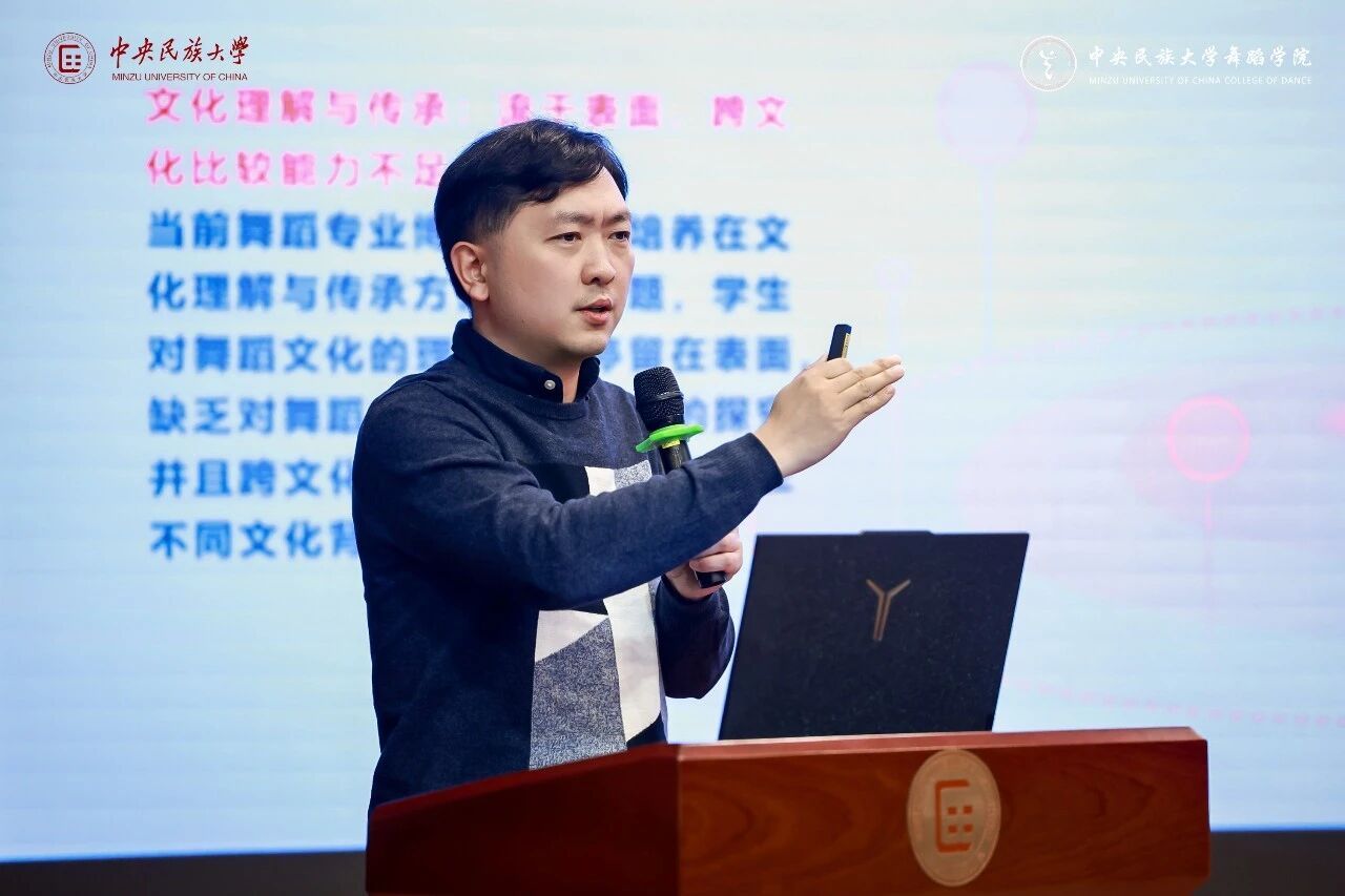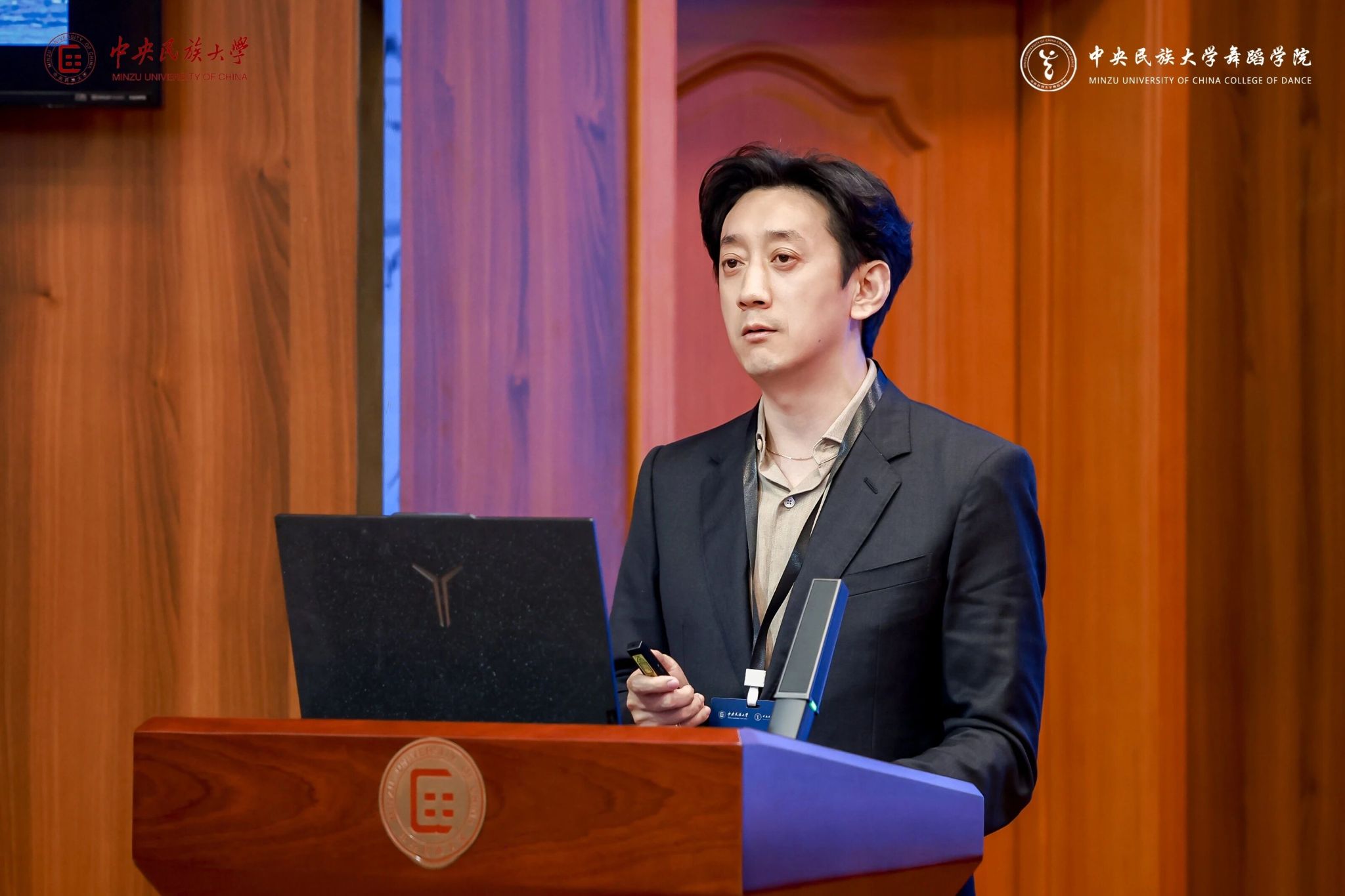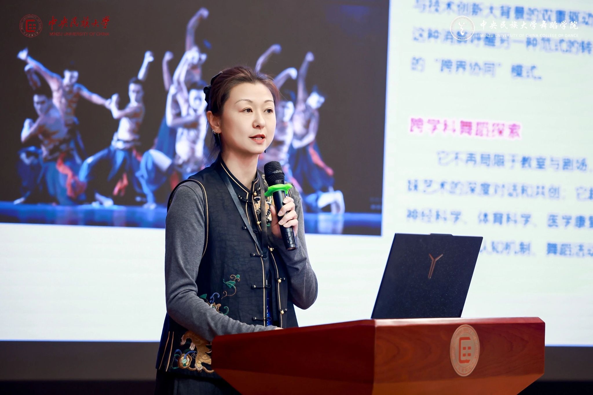 党总支书记、院长、博士生导师张麟教授以《舞蹈表演人才培养中身体表现能力的多元开发路径研究》为主题进行分享,指出身体表现力是舞蹈表演的核心,其高低决定了表演水平。通过动作分析和动作构型课程开发身体思维,培养舞者对身体自我舞动的了解和实时操控;通过戏剧表演课程转型和身体语义表达机制建设,激活演员善于表达、用肢体言说的意识;通过身体控制层面训练,提升舞者对自我身体部位、肌肉等的综合操控能力;通过乐感浸润层面训练,强化舞者对音乐色彩的动态感知和音乐织体结构的动态设计。此外,AI技术在舞蹈表演训练中具有应用潜力,通过AI数据比对与反馈分析,能够助力舞者身体表现力的科学化提升。与此同时分享了具体的身体表现力开发训练方法。