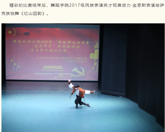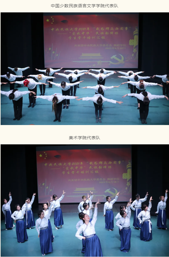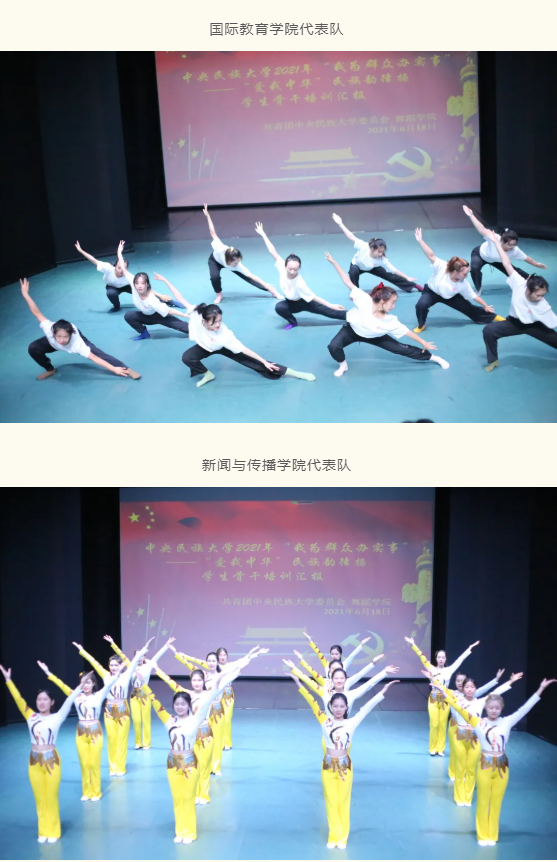 的专业优势,为学校普及、推广民族舞蹈提供专业上的帮助,为全校师生们更全面细致地学习和认识民族文化创造条件,是“我为群众办实事”的生动实践。最后,她希望各学院在此次活动中充分展现学习成果,为民族舞蹈事业的发展、为建党百年献上最美好的祝福。