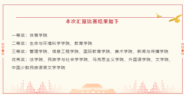 接着,来自14个学院的代表队根据抽签顺序先后登场,展示了他们一个月来培训学习的成果,并由五位评委打分。最终评选出一等奖1名、二等奖2名、三等奖5名和优秀奖6名。