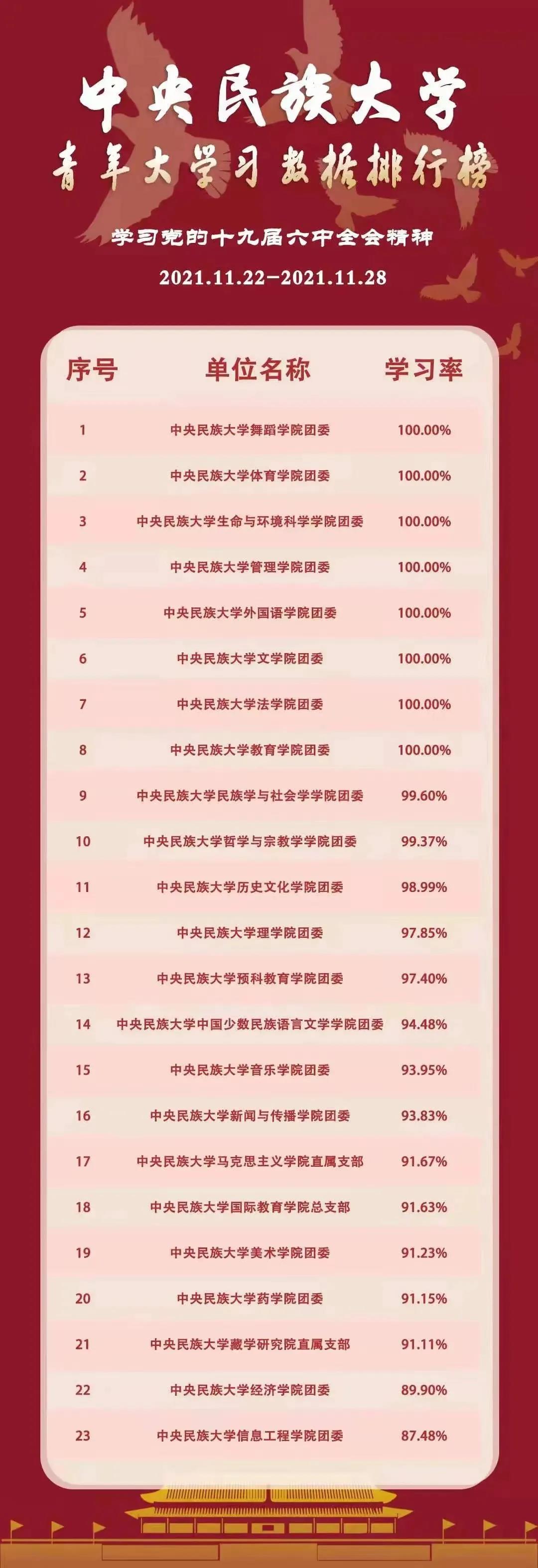 的同学们积极参与青年大学习网上主题团课,团学参与率均为100%位列第一,值得表扬,希望各团支部继续保持。