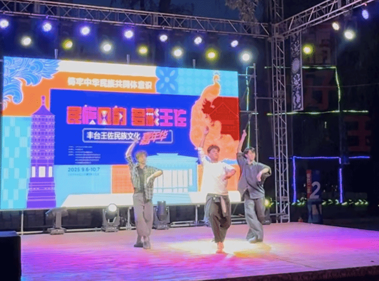 学子受邀登台,表演经典作品《奔腾》。节奏铿锵、舞姿豪迈,同学们用身体语言诠释着民族精神与时代气息,赢得现场阵阵掌声。“观众非常给力,我们跳得也特别尽兴!”舞院学子在舞台上绽放光彩,用舞蹈传递团圆与奋进的双节祝福。