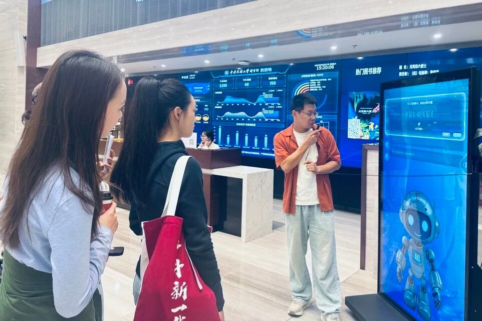随后,同学们走进智慧中心与综合楼,沉浸于科技与人文交织的校园空间。现代化的设施与智能应用令大家叹为观止,特别是与“超星AI馆员”的互动,让同学们近距离体验到人工智能为学习与生活带来的高效与便捷,也深切感受到科技如何为校园文化注入新的活力。