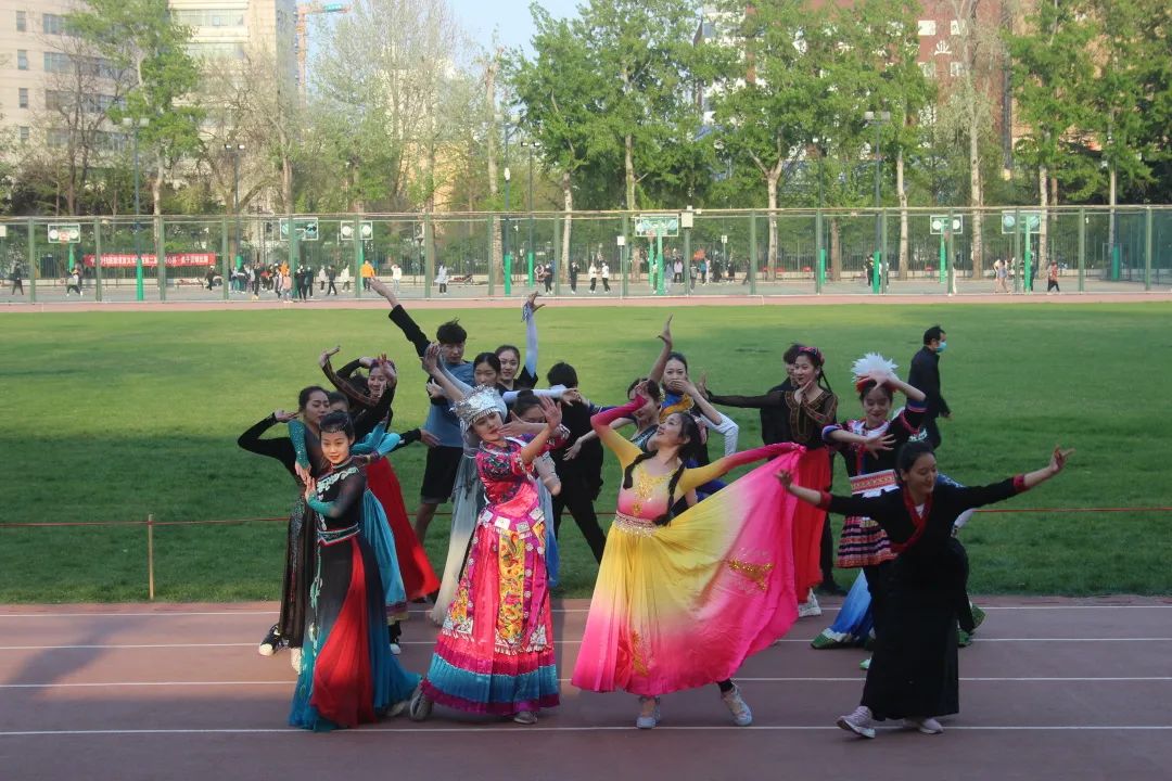 20级英才班与18级英才班为我们带来了快闪节目,他们身着各具特色的少数民族服饰,轻盈的舞姿,自信的笑容,在《爱我中华》的歌声中洋溢青春的活力与激情,展现新时代大学生像石榴籽一样紧紧抱在一起,凝聚起同心共筑中国梦的青春力量!