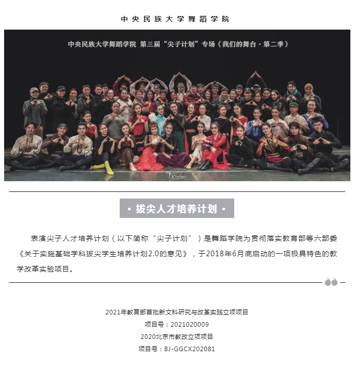 2. 选拔出具有表演天赋、编创潜力、有目标和理想的学生,进行个性化培养。以高标准、严要求为准,达到最终培养计划成果的高质量完成。