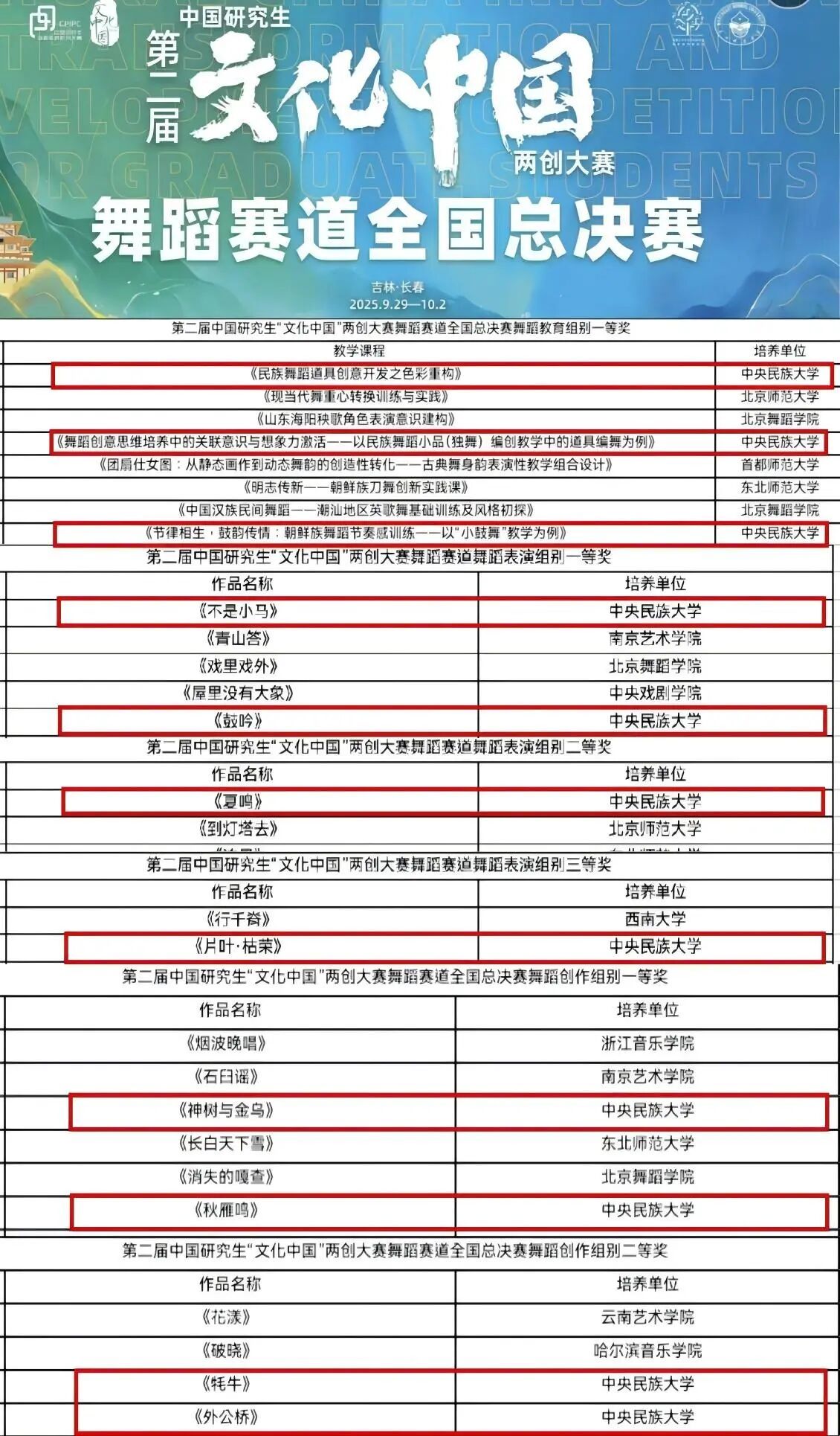 在此次比赛中再度绽放光彩,在创作、表演、教育三大赛道中获得亮眼战绩,交出了一份彰显民族舞蹈“两创”活力的优异答卷。