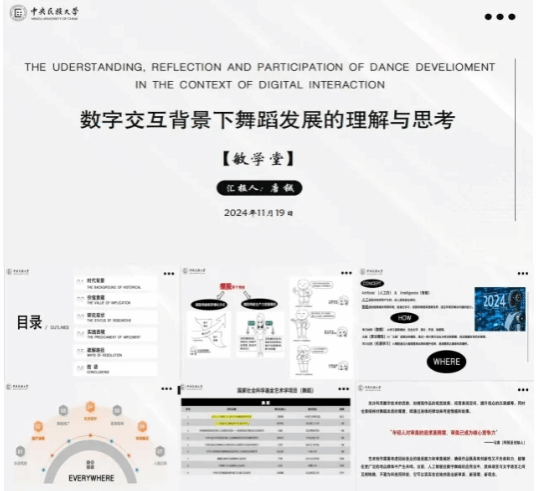 2024 级博士研究生唐铖主讲,主题为《数字交互背景下舞蹈发展的理解与思考》。