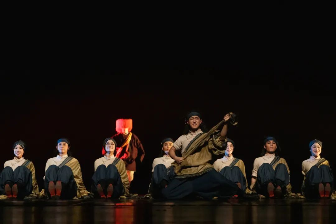 以领舞代表时间、传统、精神,群舞表达文化流动的现象,共通出跨越年代与疆界的“咏歌之不足,不如手之舞之足之蹈之也”的身体表情。用文化的身体述说身体的文化,表达出身体语言的修养,呈现出传统与现代交织、交融的现象。青年踏着不熄的生命力坚定前来,融入多元新时代,洽似热望于共同……