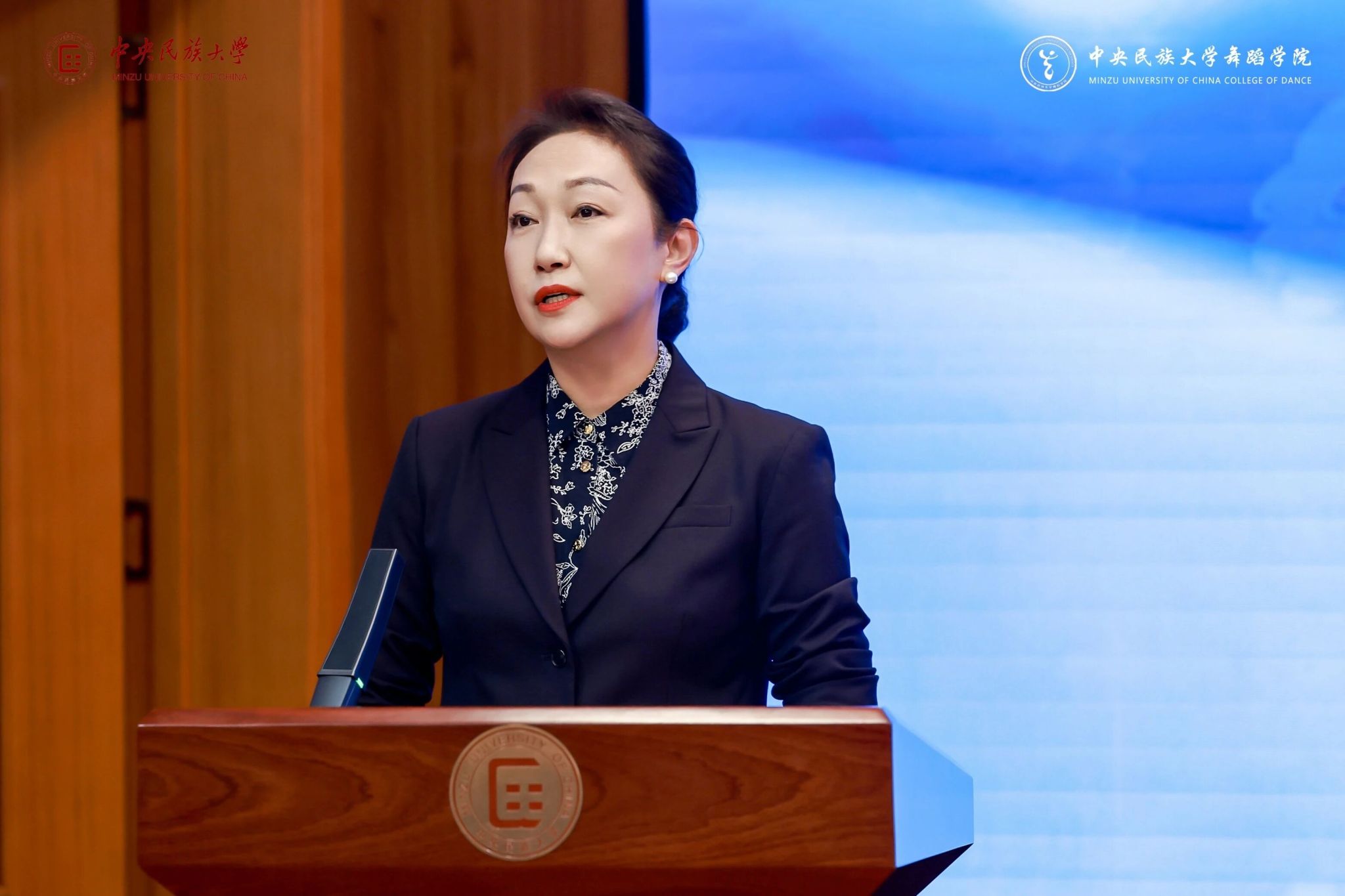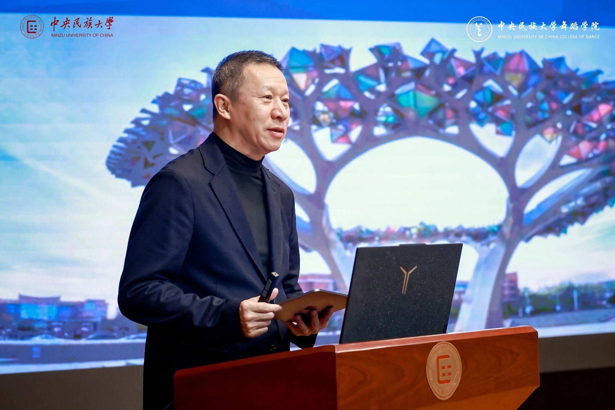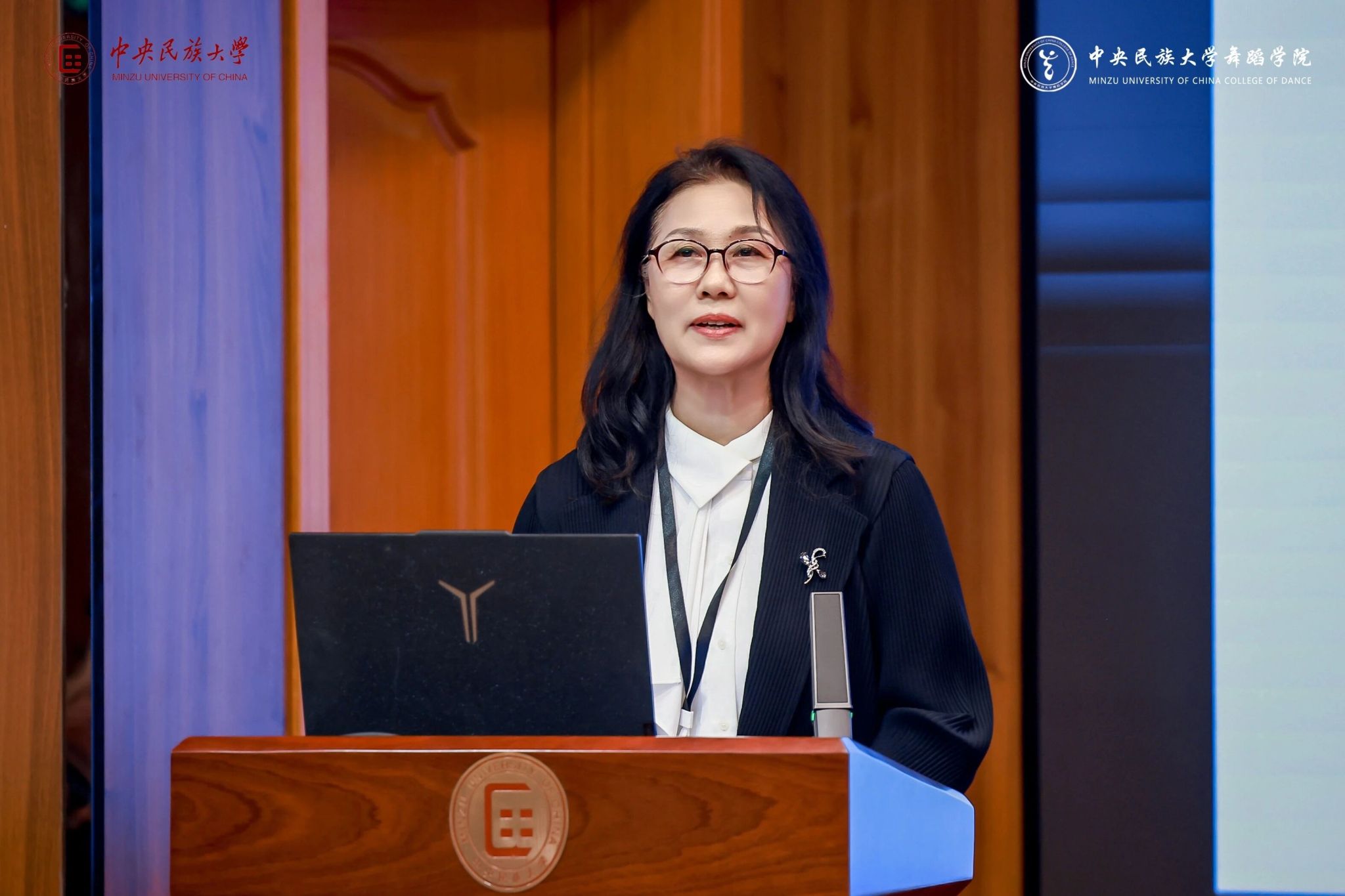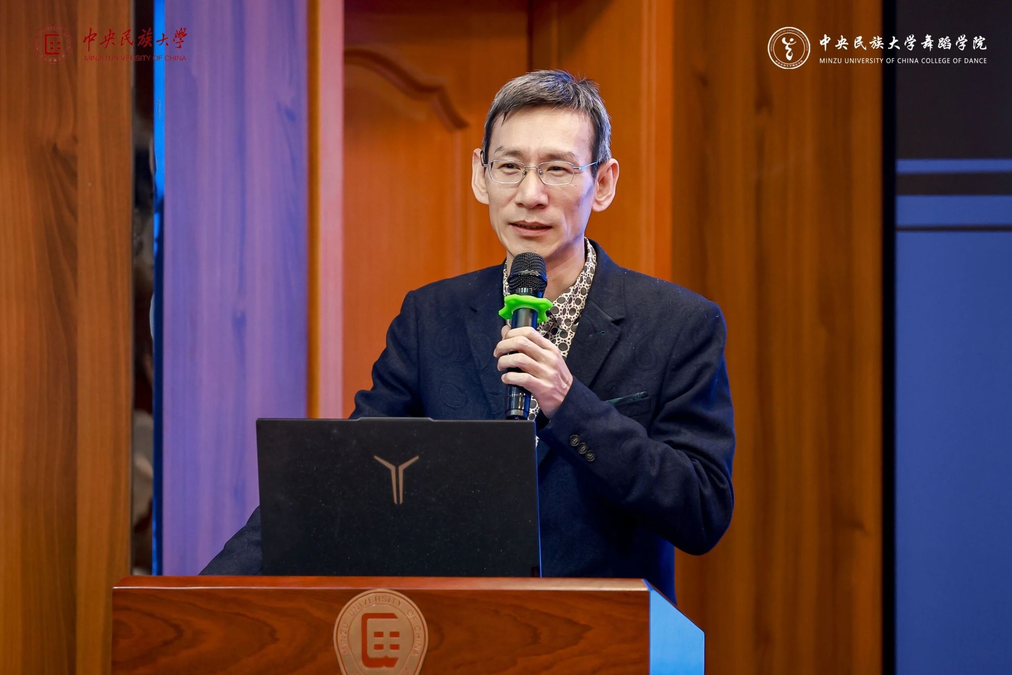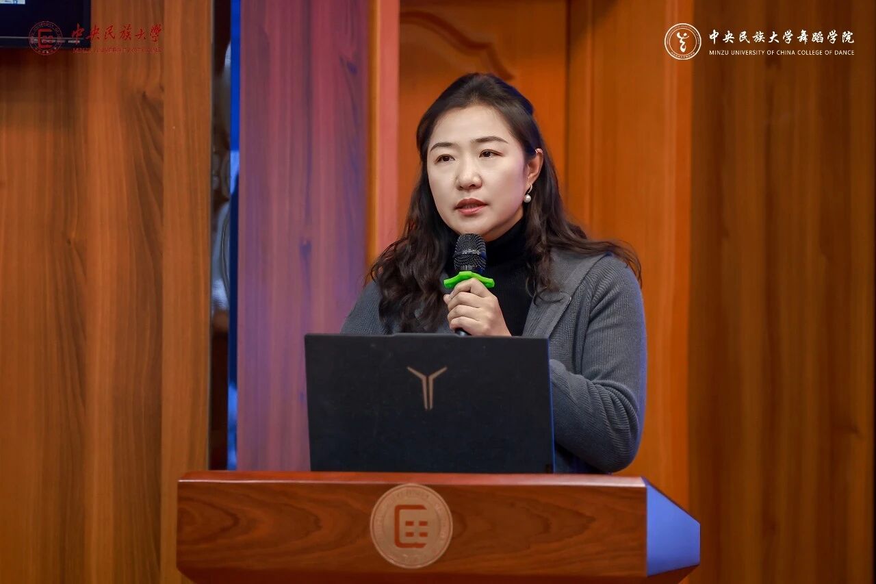 党总支书记、院长、博士生导师张麟教授以《舞蹈表演人才培养中身体表现能力的多元开发路径研究》为主题进行分享,指出身体表现力是舞蹈表演的核心,其高低决定了表演水平。通过动作分析和动作构型课程开发身体思维,培养舞者对身体自我舞动的了解和实时操控;通过戏剧表演课程转型和身体语义表达机制建设,激活演员善于表达、用肢体言说的意识;通过身体控制层面训练,提升舞者对自我身体部位、肌肉等的综合操控能力;通过乐感浸润层面训练,强化舞者对音乐色彩的动态感知和音乐织体结构的动态设计。此外,AI技术在舞蹈表演训练中具有应用潜力,通过AI数据比对与反馈分析,能够助力舞者身体表现力的科学化提升。与此同时分享了具体的身体表现力开发训练方法。